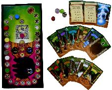 ゲーム中に各プレーヤーに配られるのは、11種類のカードです。これらのカードは魔法の薬を作るための材料なのです(ゲームには関係ありませんが)。1種類はジョーカーでどのカードとしても使えます。残り10種類のカードには、そのカードを集めた場合のポイントが描かれています。