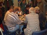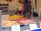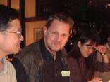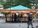 ドイツ人は何処でも、誰でも、いつでもゲームを楽しんでいる、本当に老若男女、幼児からおじさんまでゲームを楽しんでいましたすっご〜ぅ さらにもうひ・と・つ会場で出会った日本人はみんなお友達、声を掛け合って「今晩ご一緒に食事しましょう。7時集合」そんな合言葉で集まった人がザット20名すごいね。その中に我が家のご一行5名も入っていますが、居るですよ日本人。その中に、ゲーム作家のダン・グリムン氏もいらっしゃいました。さすがゲーム作家、食事を楽しみながら「ちょっとしたゲームを楽しみましょう」とコースターを使ってゲームを教えてくださいました。そう、きっとこうやってゲームを楽しむ文化がドイツには根付いているんですねきっと この会食にはゆうもあの一階さん、カプコンのカタン大会に参加の高木さん渡部さん、内藤美樹さん、遊宝洞の皆さん他にもいっぱい集われました。楽しい時間はアットいう間に過ぎて夜はドンドンふけてゆく名残惜しい。我が家の一行のフェアーは1日だけ、エッセンはタマタマお祭り(なんのお祭りかはわかりませんが)普段は見られない露店市場が出てました。
