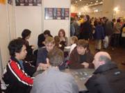10/26 最終日 社長が業者周りをするためにブースは一人、日曜日と言うこともあってお客さんの出入りは多く一人で切り盛りはすごく大変 限界*** そんな時騎兵隊のように現れたユリアン君とエンドリック君、少年たちが輝いて見えたそうそりゃそうでしょママの許しももらって、その上サーガのドイツ語ルールとカードリストまで持ってきてくれたそうです。そりゃすごい 彼らは夕刻まで大活躍をしてくれたそうです。遊宝洞さんいわく些少のお礼とゲームを渡して、来年の再会を約束したそうです。